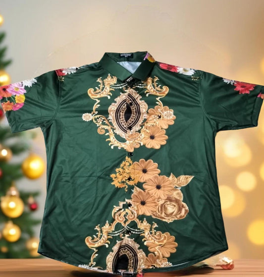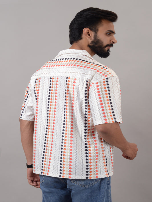Men Orange Cotton Blend Printed Spread Collar Half Sleeves Oversized Casual Shirt (SIZE- M,L,XL)