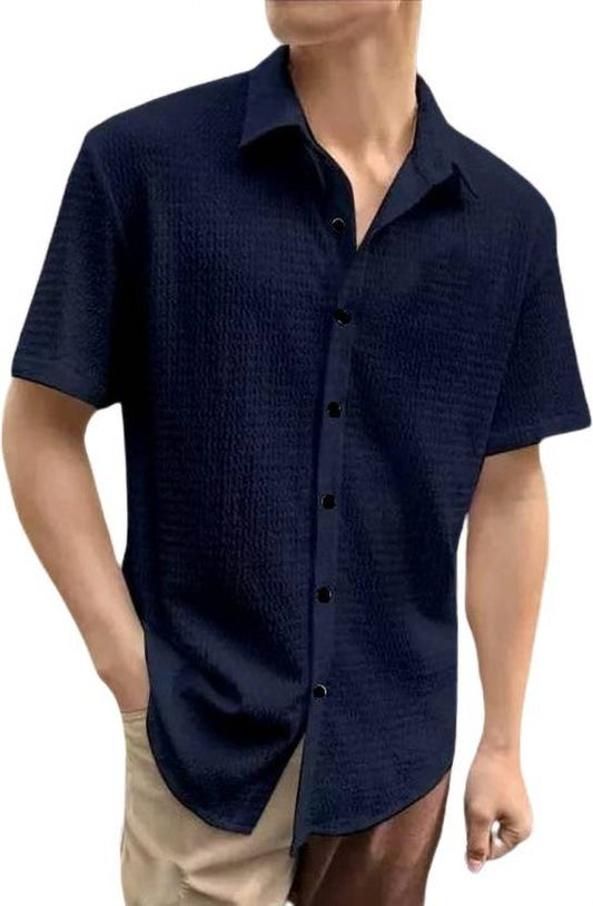 Men Regular Fit Solid Spread Collar Casual Shirt