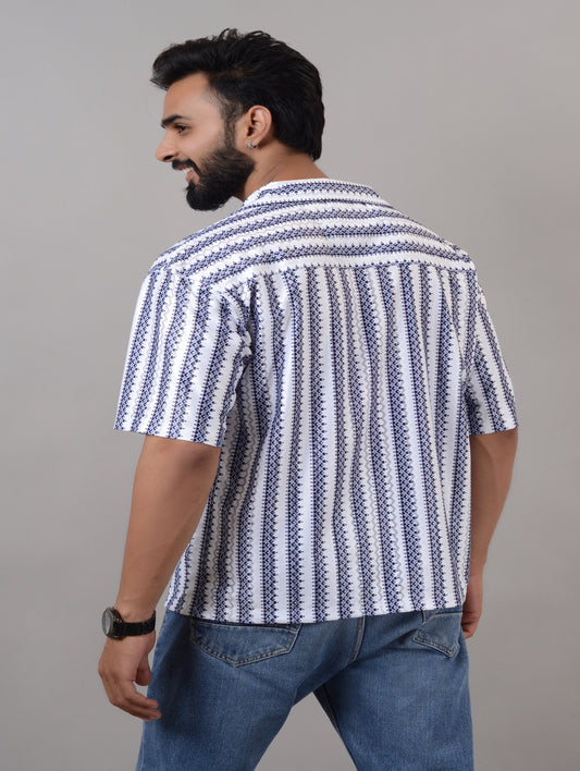 Men Blue Cotton Blend Striped Spread Collar Half Sleeves Oversized Casual Shirt (SIZE- M,L,XL)