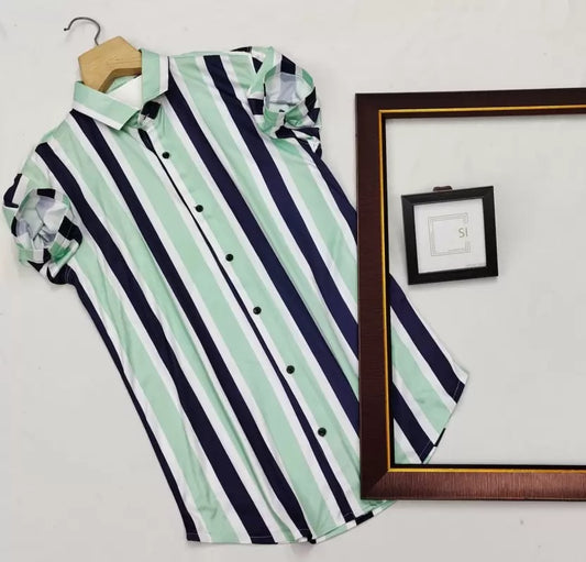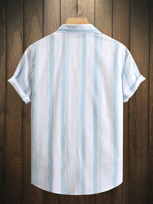 Men Blue Cotton Blend Striped Spread Collar Half Sleeves Oversized Casual Shirt (SIZE- M,L,XL)