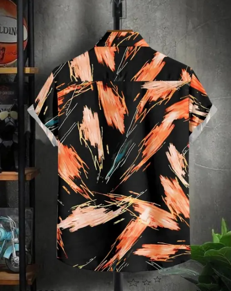Men Orange Cotton Blend Printed Spread Collar Half Sleeves Oversized Casual Shirt (SIZE- M,L,XL)