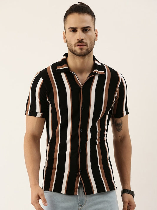 Men Regular Fit Striped Spread Collar Casual Shirt