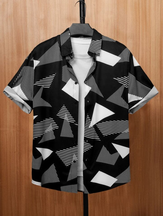 Men Slim Fit Printed Spread Collar Casual Shirt