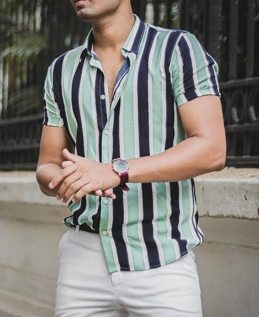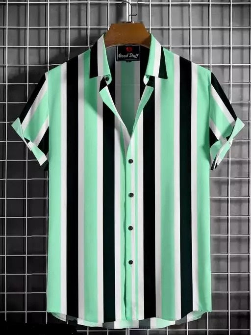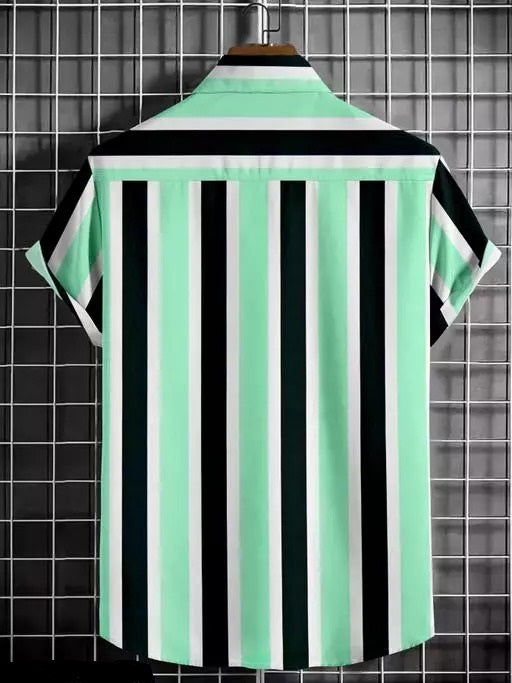 Men Regular Fit Striped Cut Away Collar Casual Shirt