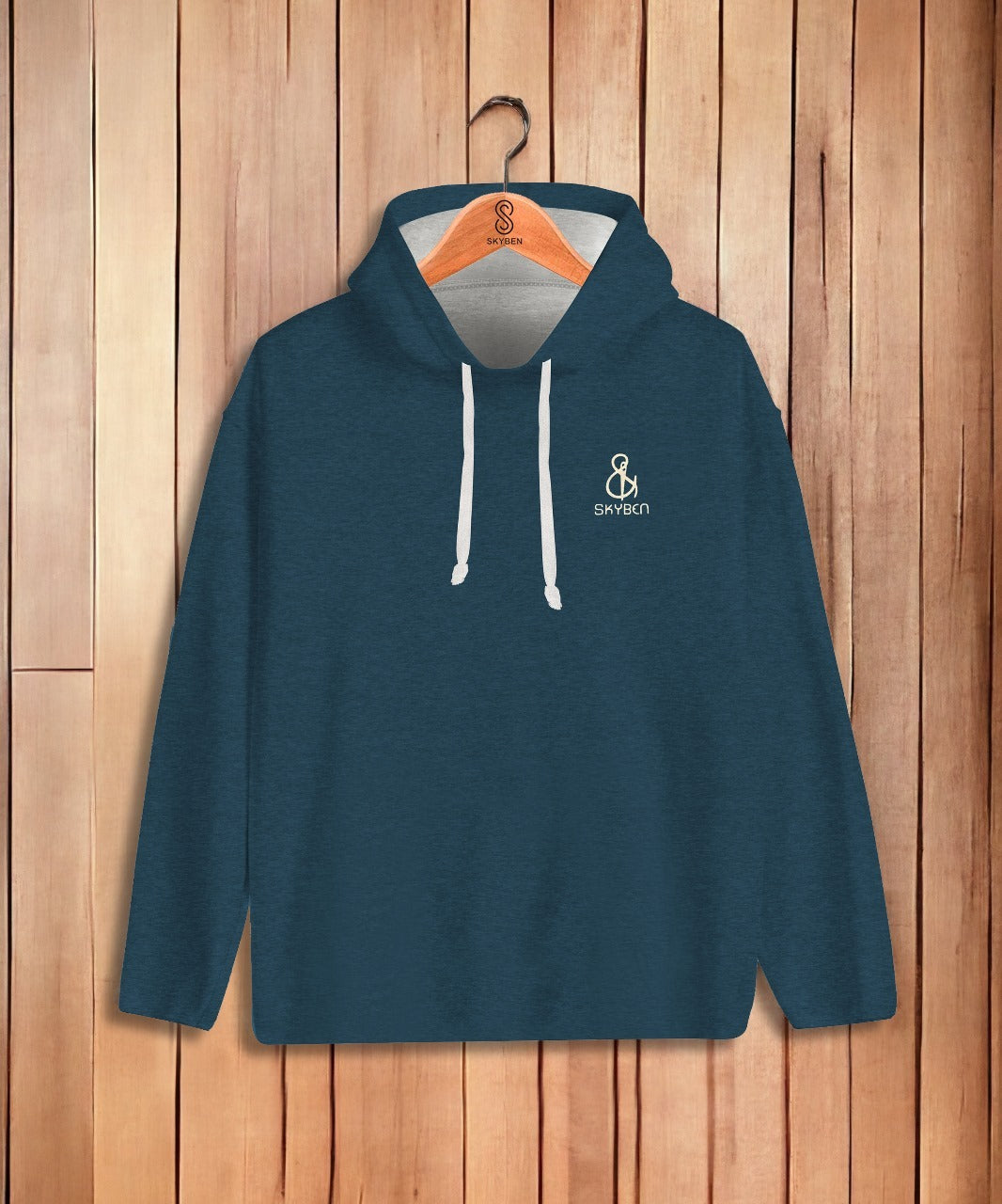 Pre_Winter Men Solid Hooded Neck Poly Cotton Blue T-Shirt ( Multi_Color )